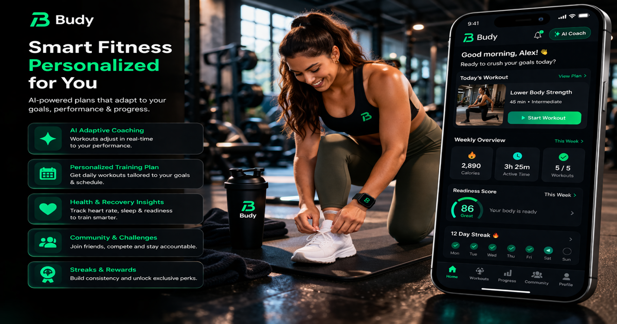 Budy lets you generate a personalized workout plan during a free trial. Tell the AI your goal, schedule, equipment, and fitness level — and get a structured training program in minutes. No generic templates, no guesswork, just a plan built around your actual situation.