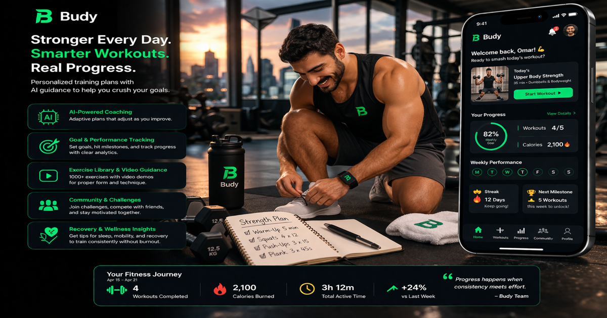 Random workouts do not build muscle efficiently. Hypertrophy requires progressive overload — systematically increasing the demand on your muscles through weight, volume, or intensity over time. Budy builds this into every plan with explicit progression schemes. Learn more in our progressive overload guide.